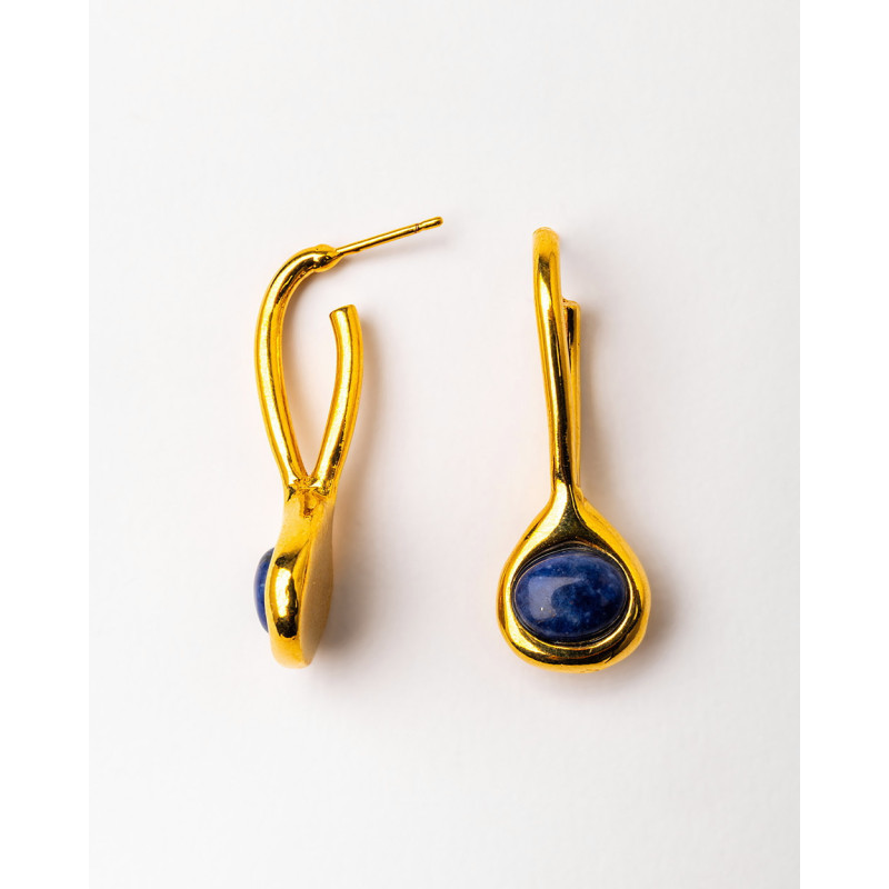 Pendiente baño de oro con sodalita.