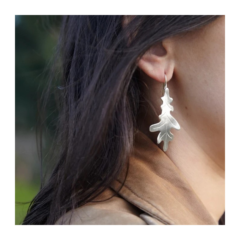 Pendientes grandes Carballo con gancho móvil están inspirados en la majestuosidad de los robles. Llevan un acabado de plata de ley 925 mate que realza su elegancia y sofisticación. Equipados con un gancho móvil que asegura comodidad y facilidad de uso, son ideales para quienes buscan una joya distintiva y artesanal.